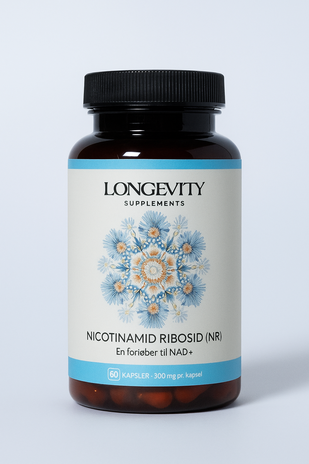 På vores etikette skriver vi NR (Nicotinamid Ribosid), fordi det er den aktive form, som kroppen bruger til at øge NAD⁺-niveauet.